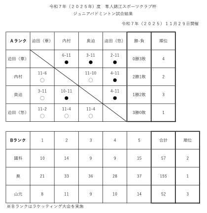 令和7年(2025年)11月29日(土)隼人錦江スポーツクラブ杯ジュニアバドミントン大会が開催されました。