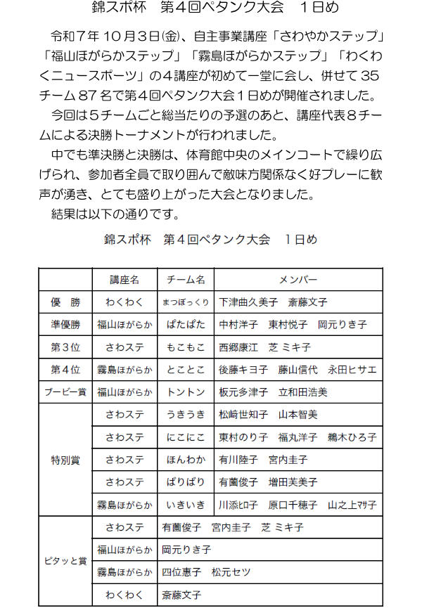 第4回ペタンク大会 1日め 大会結果・競技風景